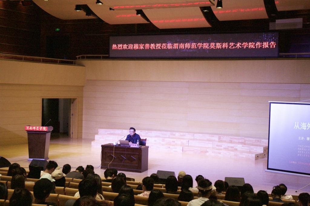 5月23日下午,中国艺术研究院研究员穆家善教授在逸夫楼音乐厅作题为“从海外看中国画”的学术讲座,Bsports必一体育执行经理殷晓克、副经理梁卫民、美术学专业300余名师生参与聆听。报告会由殷晓克主持。