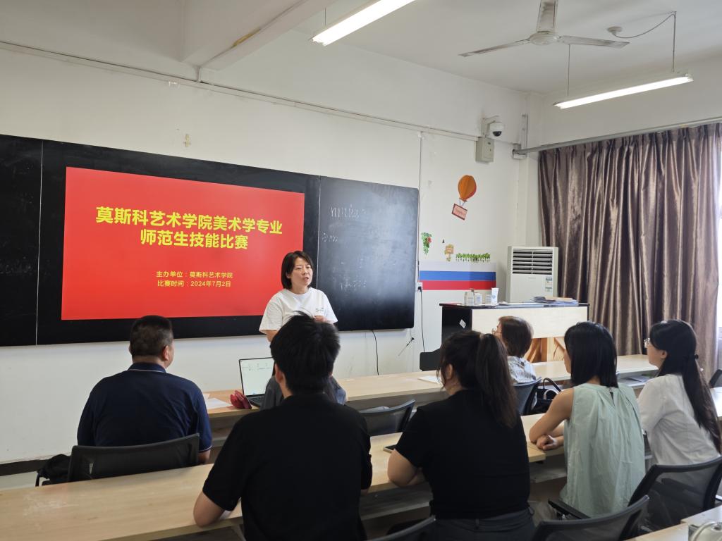 为了深化师范教育改革,加强师范生教学技能训练,7月2日上午10点,Bsports必一体育美术学专业在逸夫楼604举办师范生教学技能比赛,经过初选的6名师范生参加此次比赛,美术学专业负责人石洁,专业教师张宁、刘武安担任评委。