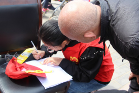 在此我们呼吁,当您在大街上看到有佩戴黄手环的老人时,请注意他是否可能需要帮助,每一位黄手环佩戴者,上面都记录着老人的姓名、电话、地址、等重要信息。在他处于危险或茫然中时,请查看他的手环,联系他的家人,以便让他平安回家。在社会人口老龄化日益加剧的社会进程中,让我们共同关爱空巢孤寡老人的安全问题,他们是我们每一位做子女最关心的问题。(通讯员:高晶 高梦涵 刘海洋 图:钟泳琳)