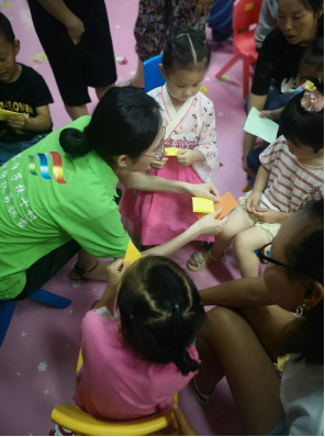 活动中,“童心港湾·关爱之行”实践队全体队员将活动开展分为四部分,第一部分为儿童剧展演;第二部分为手工教学;第三部分为手工作品赠送;第四部分为大手拉小手。森林童话故事《选美大赛》、主题儿童剧《宝贝不哭》、俄罗斯经典寓言故事《米拉和神奇的洋娃娃》。朋友与演员之间的互动,推动了现场气氛,赢得了老师、家长的阵阵掌声,并给予高度评价。