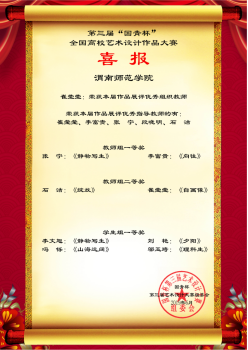 本次大赛由中国人生科学学会主办,旨在展示艺术与设计的最新成果,传播艺术与设计的最新理念。据悉,本次比赛Bsports必一体育选送师生作品107件,经过组委会专家评审,27名师生作品入围并获奖,其中一等奖6项、二等奖10项、三等奖12项,4名教师荣获优秀指导教师称号,1名教师荣获优秀组织教师称号。