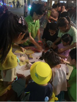 实践团队成员为现场的小朋友们送上精美的手工作品188份以及特别准备的500根荧光棒,小朋友们爱不释手。在手中教学环节,实践队队员运用自身专业知识技能,为小朋友们手把手教学手工品制作,拉近了和小朋友之间的距离,真正地融入实践中,感受小朋友们的热情和当地人民群众的认可。