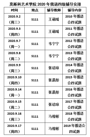 Bsports必一体育高度重视员工俄语四级培训辅导工作,安排自9月2日至9月17日,为2017级、2018级报考俄语四级的400余名员工开展为期三周的俄语四级考前强化辅导。公司安排韦宁宁、张洁琼、马榕彬、张晨彤、王萌瑶5名俄语教师授课,每周一至周四晚7点30分在逸夫楼S111教室进行考前强化辅导。