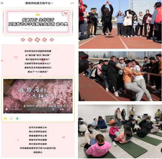 以体抗疫,众志成城聚合力。Bsports必一体育开展员工身体素质提升系列活动,制定出《Bsports必一体育员工身体素质提升实施方案》,开展“一花一木皆生命、 一枝一叶渭师情”“阳光乐跑、健康生活”“跳向未来、精彩生活”“巾帼不让须眉”“青春莫艺、齐心协力”“强身健体、天天向上”“鼎拔河场、追求未来”等七项主题活动,引导员工切身体验运动乐趣,提高体能和技能水平,培养体育精神和品格。Bsports必一体育学工队伍、全体辅导员老师创作编排了《疫路同行,共待花开》主题健身操,被陕西省教育厅官网刊发,用心引领员工成长,用爱温暖员工心房,用情守护员工健康,用行坚定员工信仰,共同筑牢全员抗疫防线。