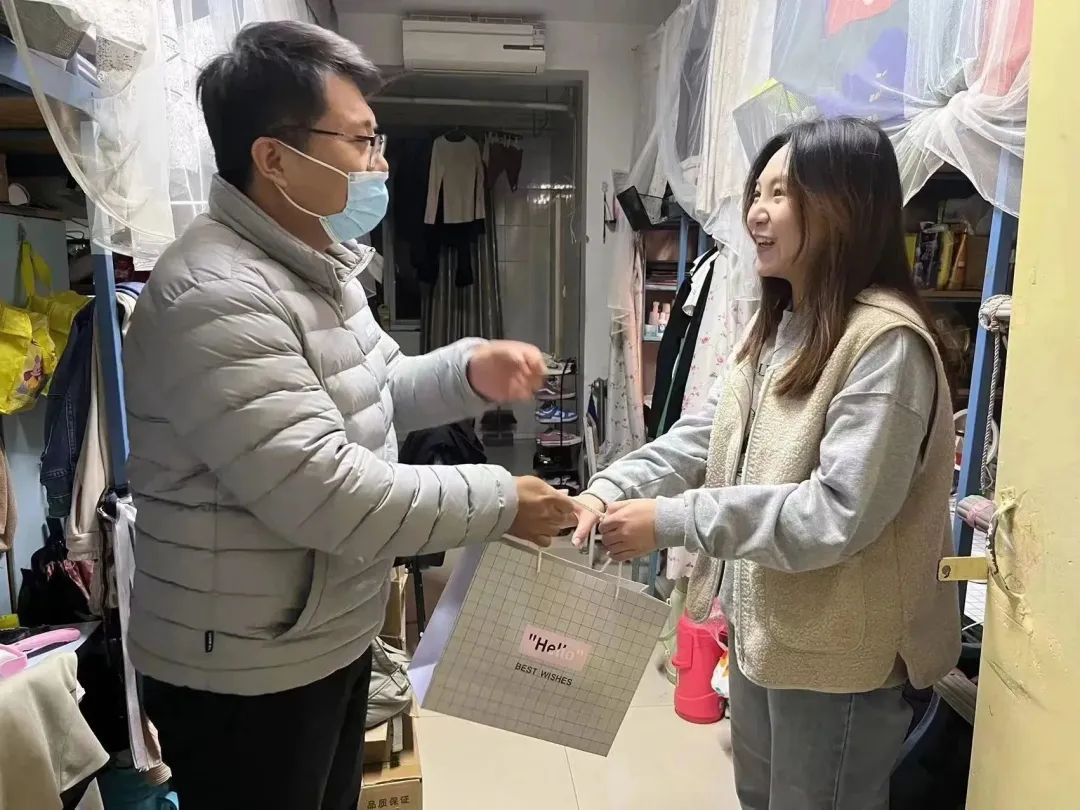 12月1日下午,公司党总支副书记叶晓燕,学工办副主任段菲和辅导员走访员工宿舍慰问少数民族员工,为同学们送去了暖心的慰问品,带去了公司与全体老师们的关怀。