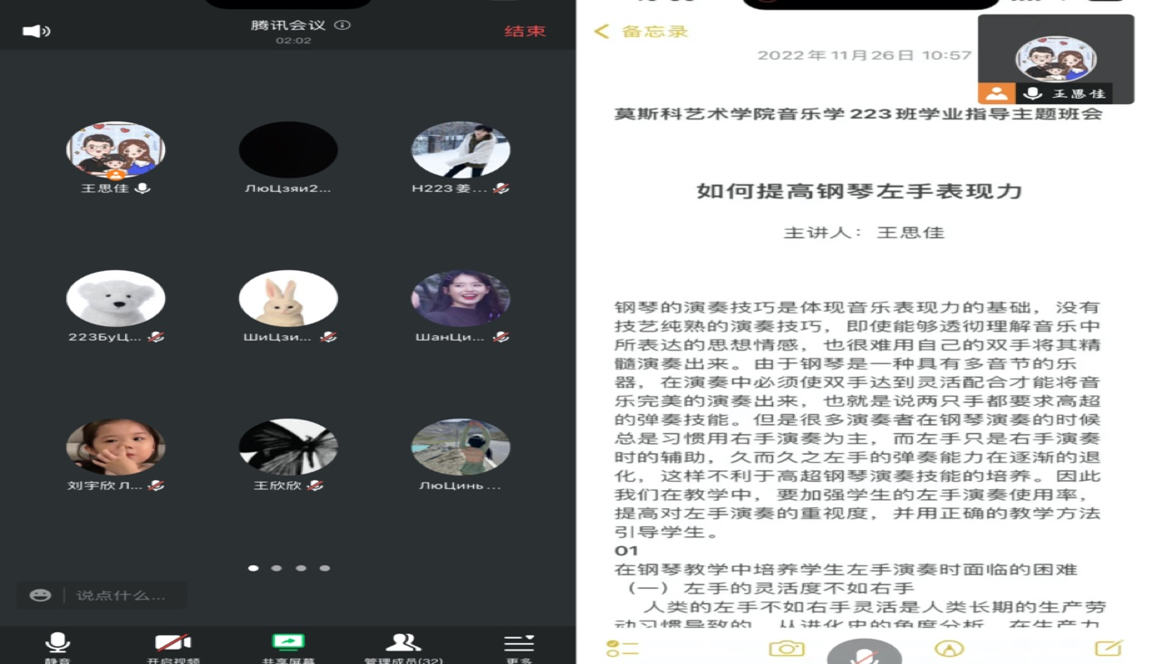 音乐学专业各班主任在对各班级员工专业学习情况梳理的基础上,对员工进行学习方法的指导,一一解答员工在学习专业上的困惑;最后各班主任对员工的专业学习提出建议:不能以点概面,而是要一专多能,要更好的融会贯通中、俄两国音乐精华,为今后回馈社会打好坚实的基础。