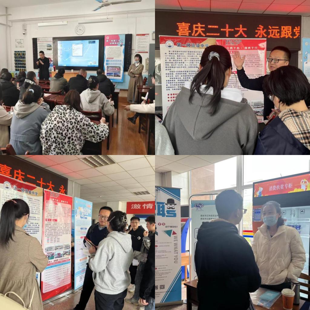 招聘会通过播放宣传片、海报、面对面交流等方式精准地向2023届毕业生送岗位、送政策、送服务。员工们携带精心准备的简历,积极与招聘人员交流,了解用人单位情况,筛选适合自己的工作单位投递简历。用人单位也主动向员工介绍公司的发展前景、招聘需求和福利待遇等优势情况。段菲、师艺园进入招聘会现场,询问招聘单位情况,为员工提出意见和建议。