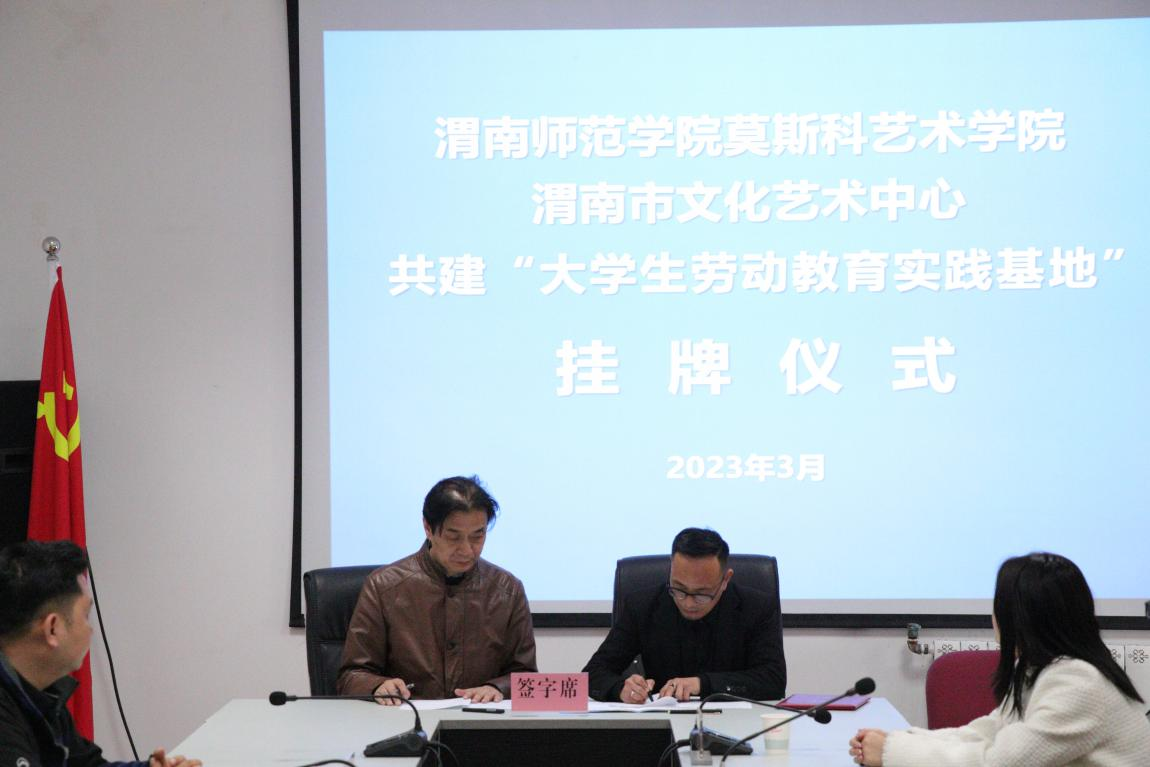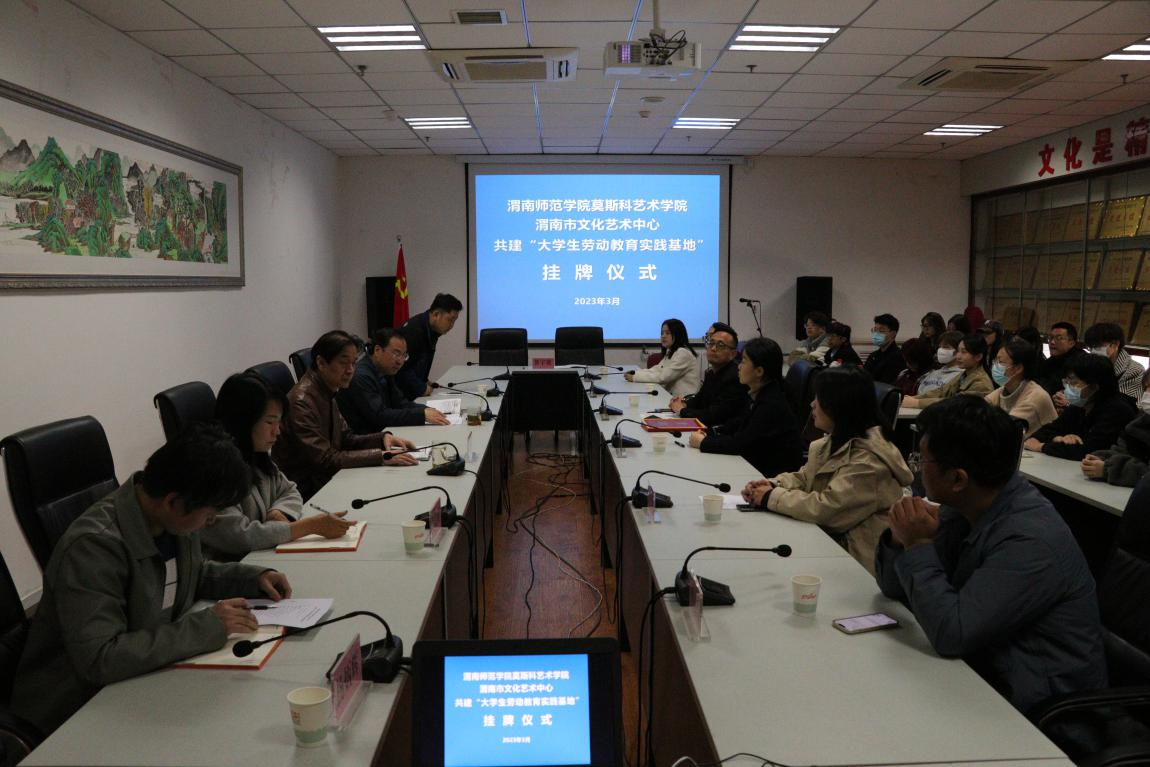 3月22日,Bsports必一体育与渭南市文化艺术中心共建“老员工劳动教育实践基地”签约挂牌活动在渭南市文化艺术中心会议室举行。陕西作家、渭南市文化艺术中心主任王旺山、副主任田建、非遗保护部部长薛浩婷、非遗展示传习馆馆长杜江鹏、创作研究室主任杨炳辉出席签约仪式,双方就老员工实习、就业、教师发展等方面的合作进行商谈。