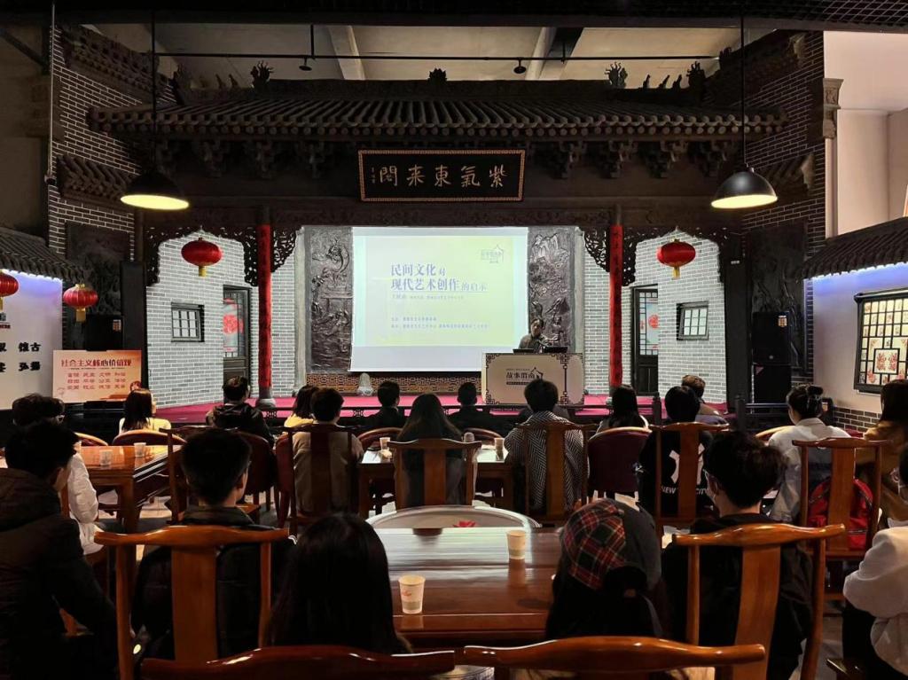 随后全体人员转至传习馆四合院内,陕西作家王旺山为参会师生做《民间文化对现代艺术创作的启示》讲座。王老师以民间文化为脉络,从其内涵、分类、艺术价值、对现代艺术的创作影响及现实案例多方位、多角度给师生们带来一场文化艺术视听盛宴,让师生们更加细致、全面的了解到民间文化在艺术创作中的重要作用。
