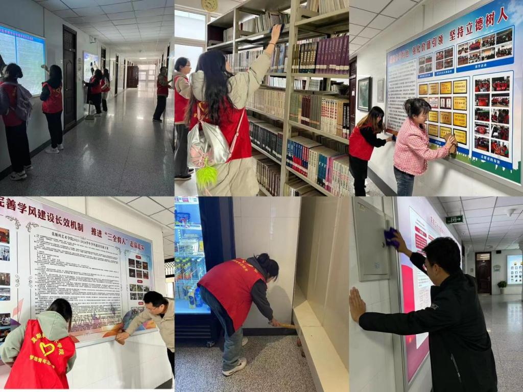 受助员工和公司老师共同协作,明确工作任务,对劳动区域进行划分,尽最大努力营造清洁、文明的校园环境。活动现场,志愿者们深入教学楼各楼层卫生死角等地方细致排查白色垃圾、烟头,坚持发现一处、清理一处,不放过每一处死角和盲点,用实际行动将创文理念传播进校园各个角落。