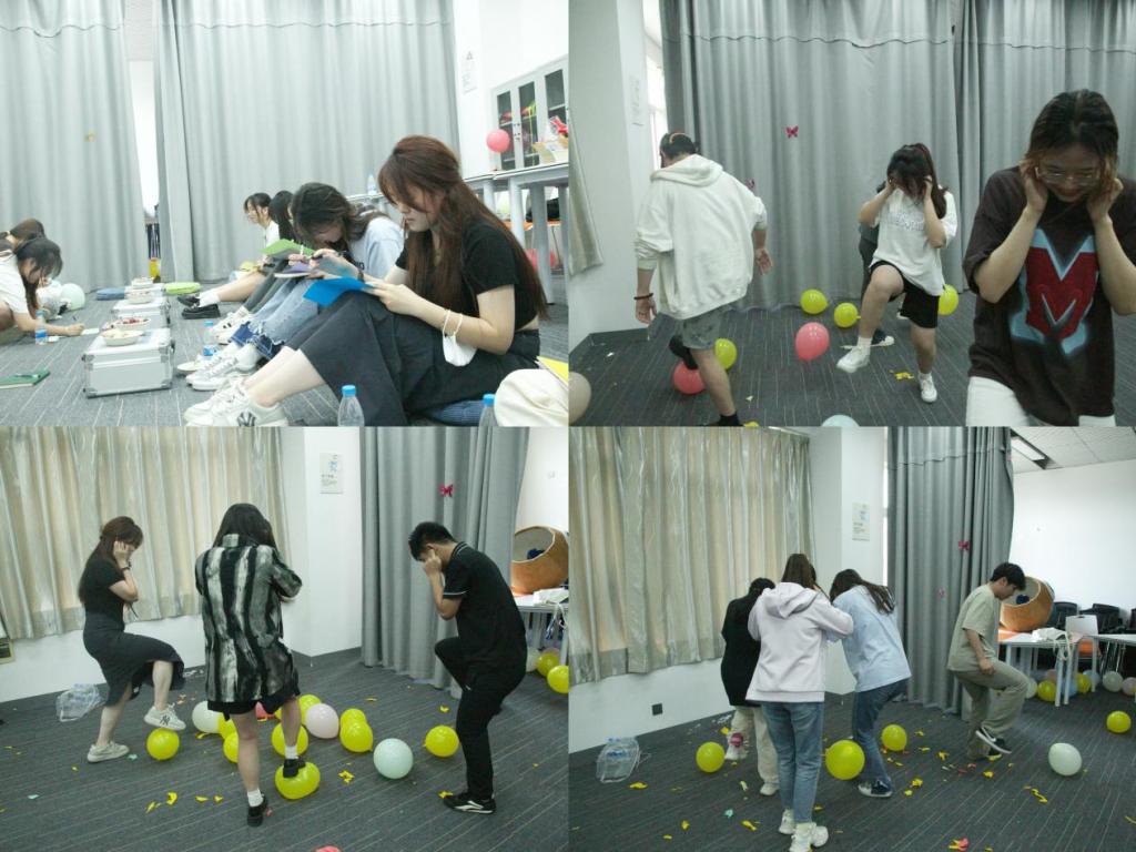 活动开始,通过“一只青蛙”和“击鼓传兔兔”两个开场游戏,引导同学们迅速进入状态,拉近彼此间的距离。接下来,同学们组队参与了“数鸭子”“蒙娜丽莎”“踩气球”等游戏,同学们兴致勃勃,认真投入,携手合作,现场充满了欢乐的气氛。