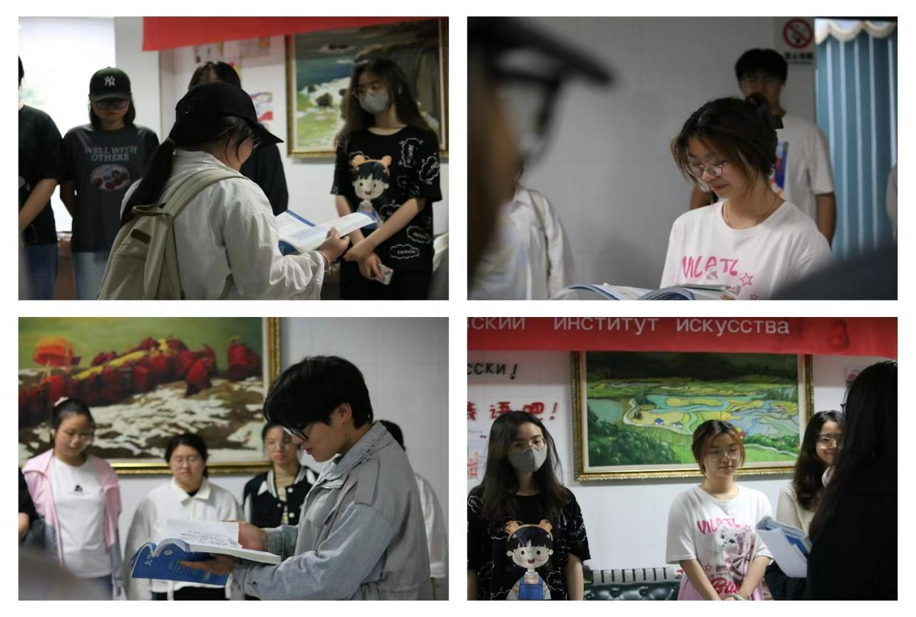 活动中,学习标兵带领大家熟读绕口令,对于陌生单词进行示范,校对标准读音,强化发音难点,做好训练营前预备工作。同学们以击鼓传花的游戏方式,进行俄语快口训练,反应热烈,积极配合员工干部的号召,展示自己口语表达能力,互相提升俄语学习兴趣。