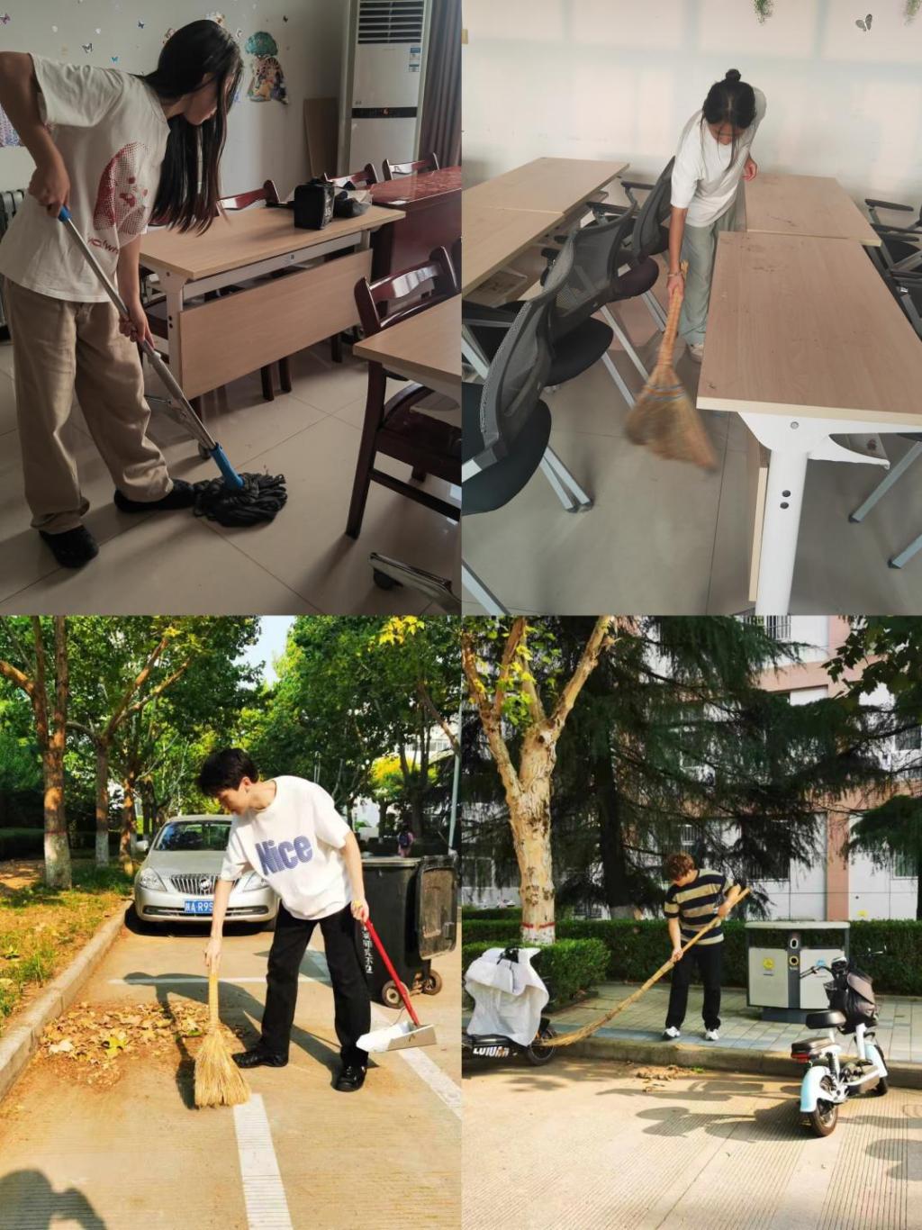 公司师生针对绿化带、道路旁堆积的落叶、杂草等卫生死角进行彻底清扫,特别是针对绿化带不同区域断枝、枯叶量,提前从人力、工具、工序等制定计划,划分区域,实行班级包干制,确保了实践活动有序有效进行。同时为了确保开学后的正常教学工作,也对教室、画室等区域的地面颜料残痕、黑板、窗台、桌斗卫生、桌椅摆放等细节再作了一次全面细致的清洁整理。