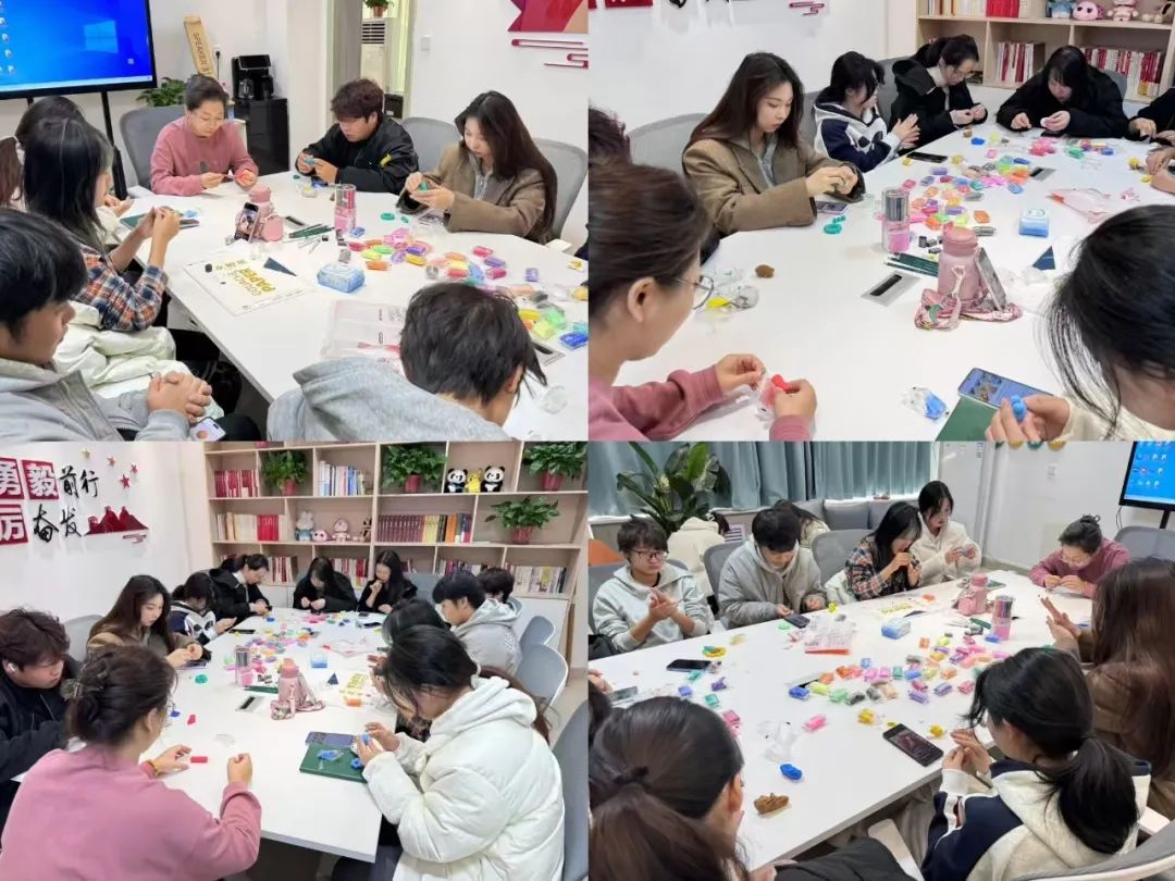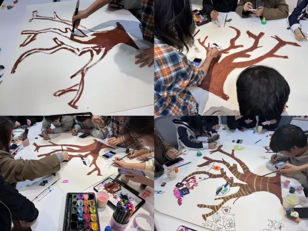 活动开始前,师艺园首先向大家介绍了本次活动的目的,粘土DIY和绘画都是表达内心情感的途径,能够舒缓同学们在生活和学习中的压力,促进大家对自身情绪的觉察与表达。主持人张艾艾向大家介绍了流程,首先开展的是粘土DIY,每个人根据自己的情绪选取不同颜色的黏土进行创作,充分发挥自己的想象力,用双手将五颜六色的粘土揉搓、塑形,赋予作品独特的情感和故事。最后,大家互相分享自己的作品,有的同学制作了可爱的卡通形象,有的同学则将自己曾经珍爱的玩具用粘土再现,大家纷纷讲述了自己创作背后的灵感和故事。第二项是情绪大树绘画,同学们根据自己的内心情感和感受在情绪大树上进行绘画,每一位同学都非常用心地创作自己的作品,将抽象的情绪转化为具体的画面,一幅幅充满个性和创意的作品,展现了大家内心丰富多彩的情感世界。