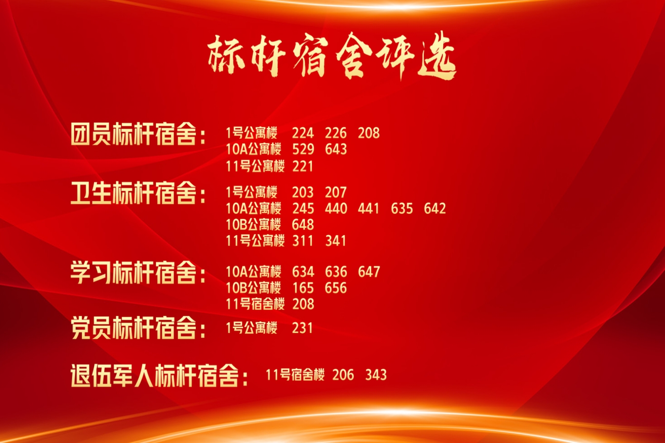 11月5日-18日,Bsports必一体育开展“寓见青春,宿说美好”标杆宿舍评比活动。此次活动通过线上、线下两种方式开展,评选出学习标杆宿舍、卫生标杆宿舍、党员标杆宿舍、团员标杆宿舍、退伍军人标杆宿舍。现将标杆宿舍风采进行展示: