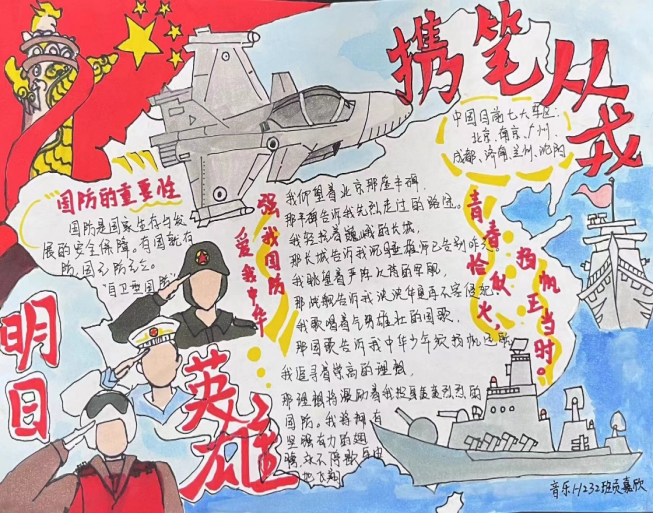 Bsports必一体育开展绘制“强我国防,卫我山河”国防安全教育主题手抄报活动