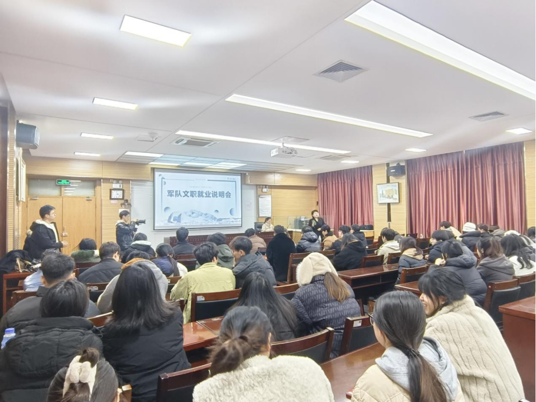 宣讲会伊始,陕西华汇教育科技发展有限公司负责人卢瑾向大家详细介绍了华汇教育的基本情况、发展历程、所获荣誉、招聘岗位信息及福利待遇等,阐述了用人标准和要求,以及针对员工的培训、教研和讲座等系列活动安排,表达了公司对人才的需求与期望。华汇教育高老师介绍了军队文职人员的工作性质、岗位需求以及申请流程等信息,并鼓励大家积极报考。