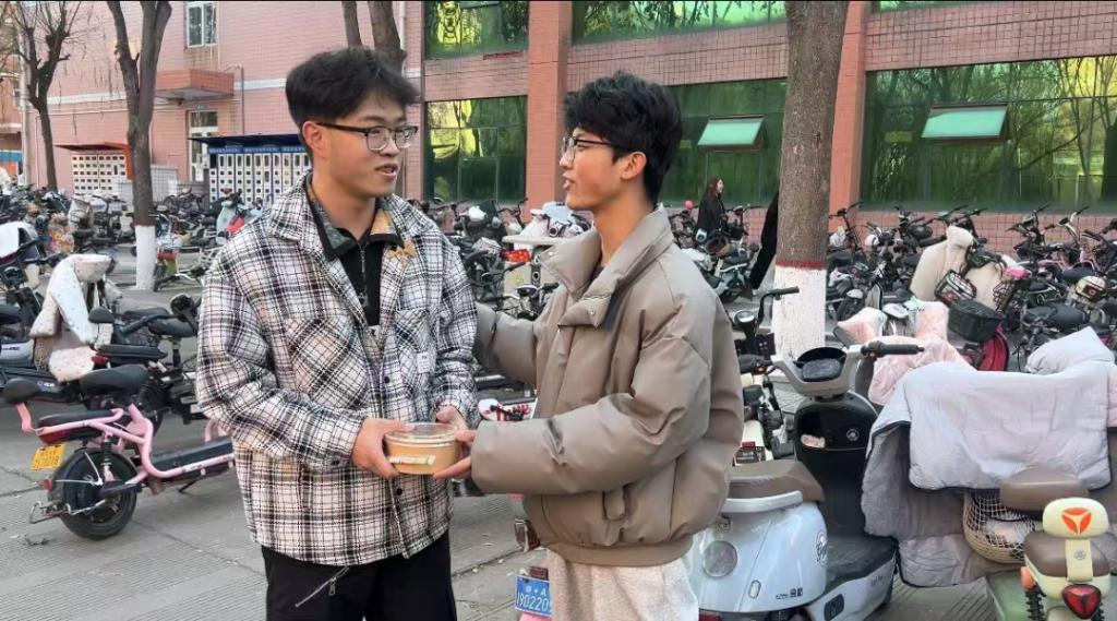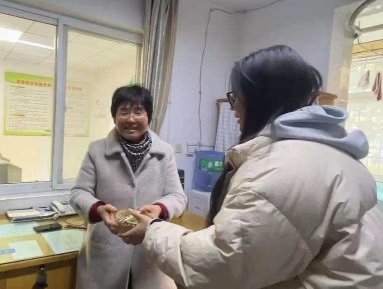 随后,员工将自己的祝福都融入到饺子中,送给正在岗位上辛勤工作的宿管阿姨、陌生的同学、食堂的阿姨......,感谢他们一直以来的坚守和陪伴,希望这份充满感恩的饺子,能够在这寒冬送温暖、传递着爱与祝福。