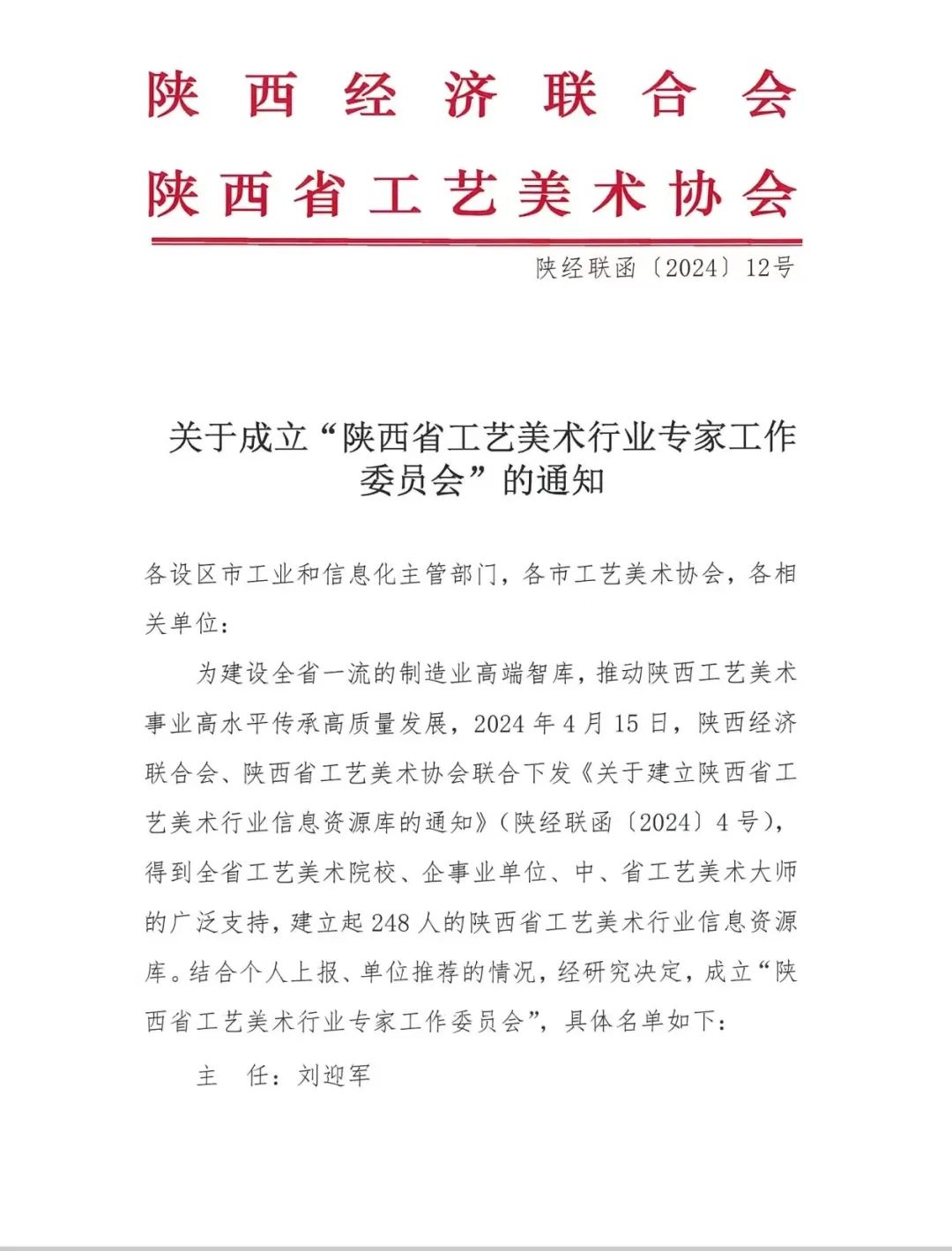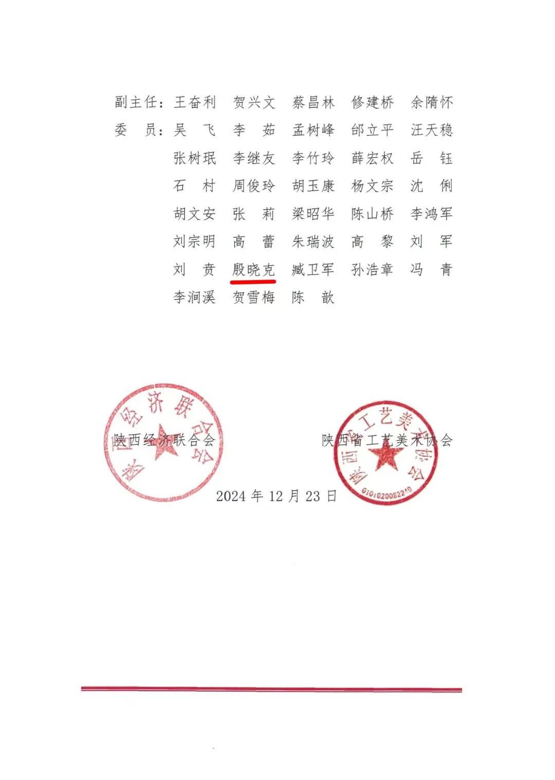 Bsports必一体育执行经理殷晓克同志当选陕西省工艺美术行业专家工作委员会成员。