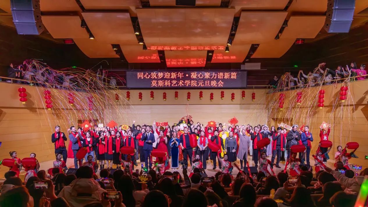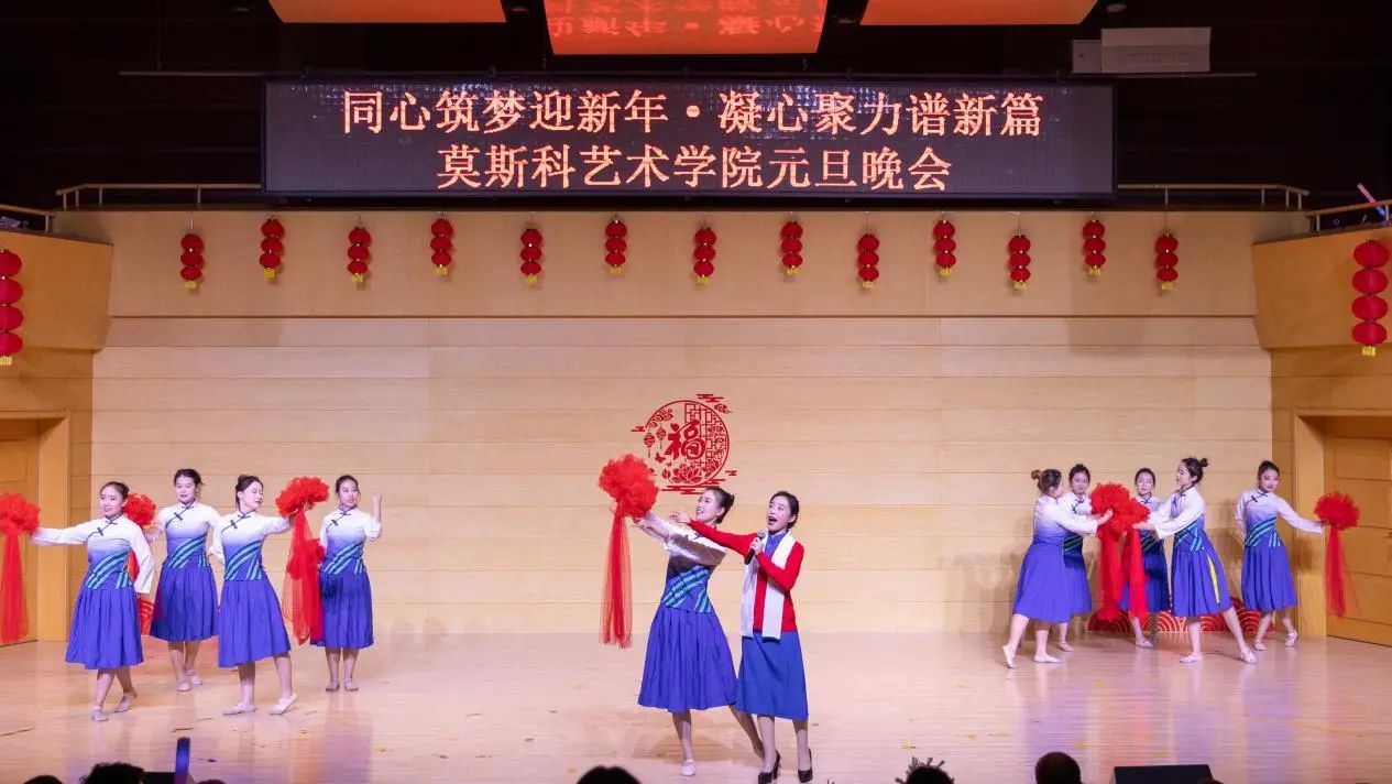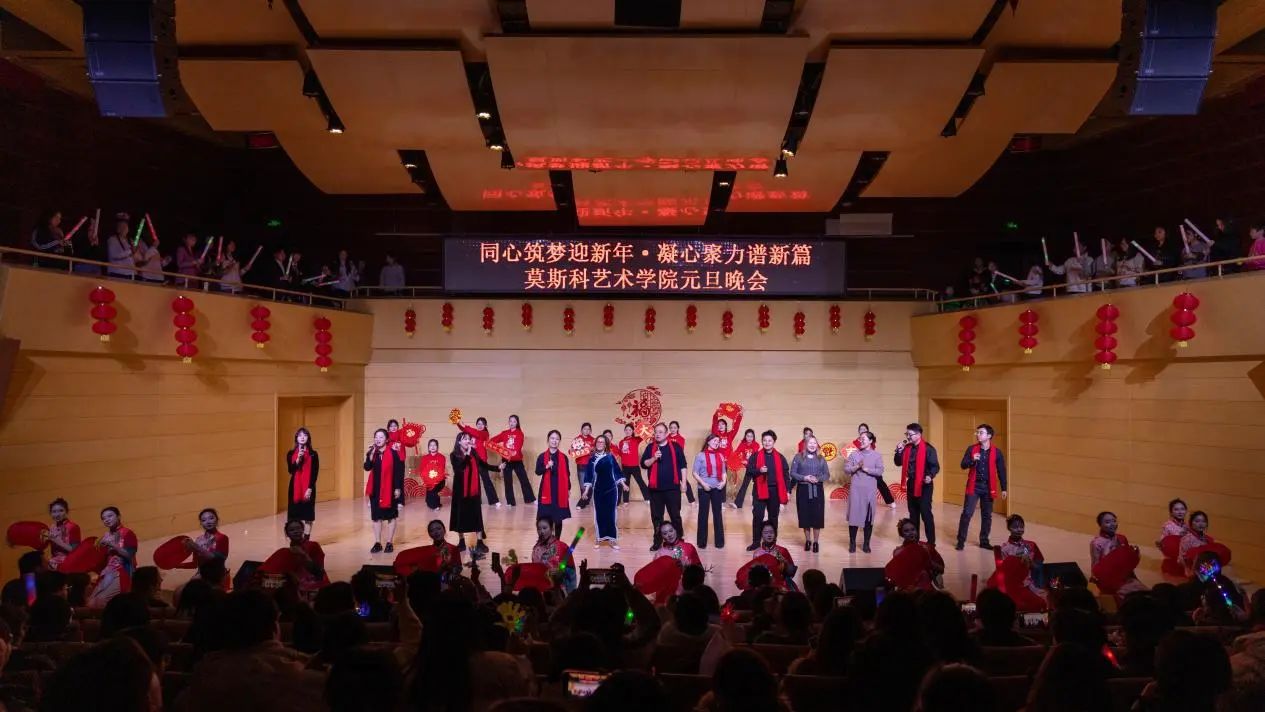 此次元旦联欢会,公司精心策划、认真筹备,以同心共筑梦迎新年 凝心聚力谱新篇为主基调,用器乐合奏、表演唱、舞蹈、合场等形式呈现;公司特邀请暑期社会实践基地孙静老师、垚垚及优秀员工王晶晶前来助阵,中俄师生同台演绎,展现全院师生凝心聚力、团结奋进、开拓进取、自强不息的良好精神面貌,表达对新时代、对美好未来的憧憬,为迎接新的一年营造欢乐祥和的氛围。