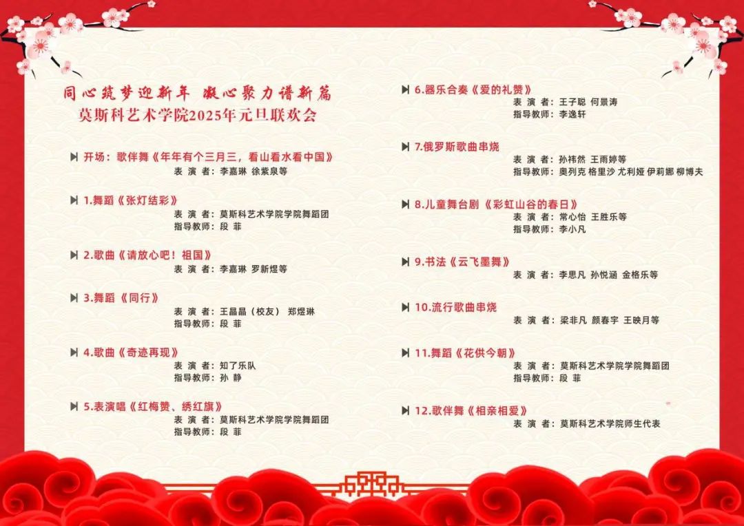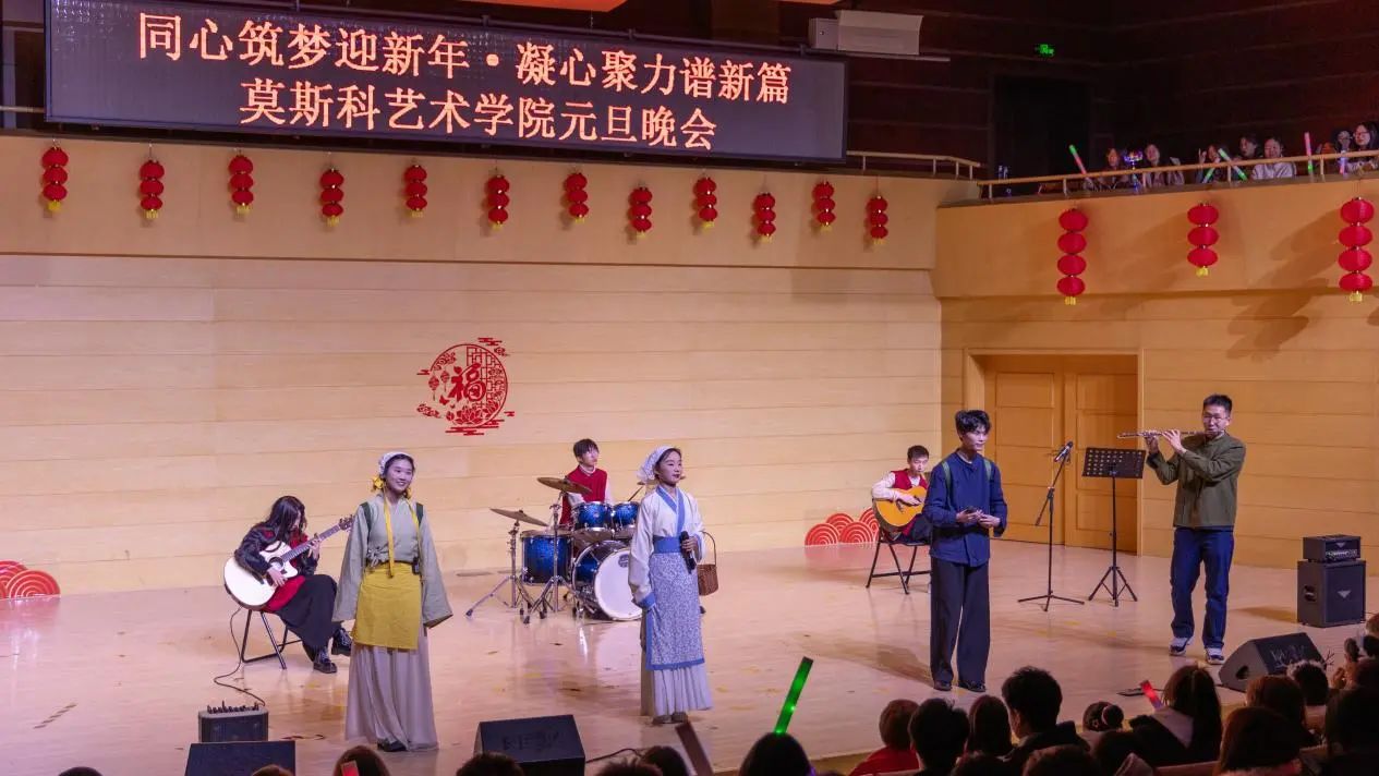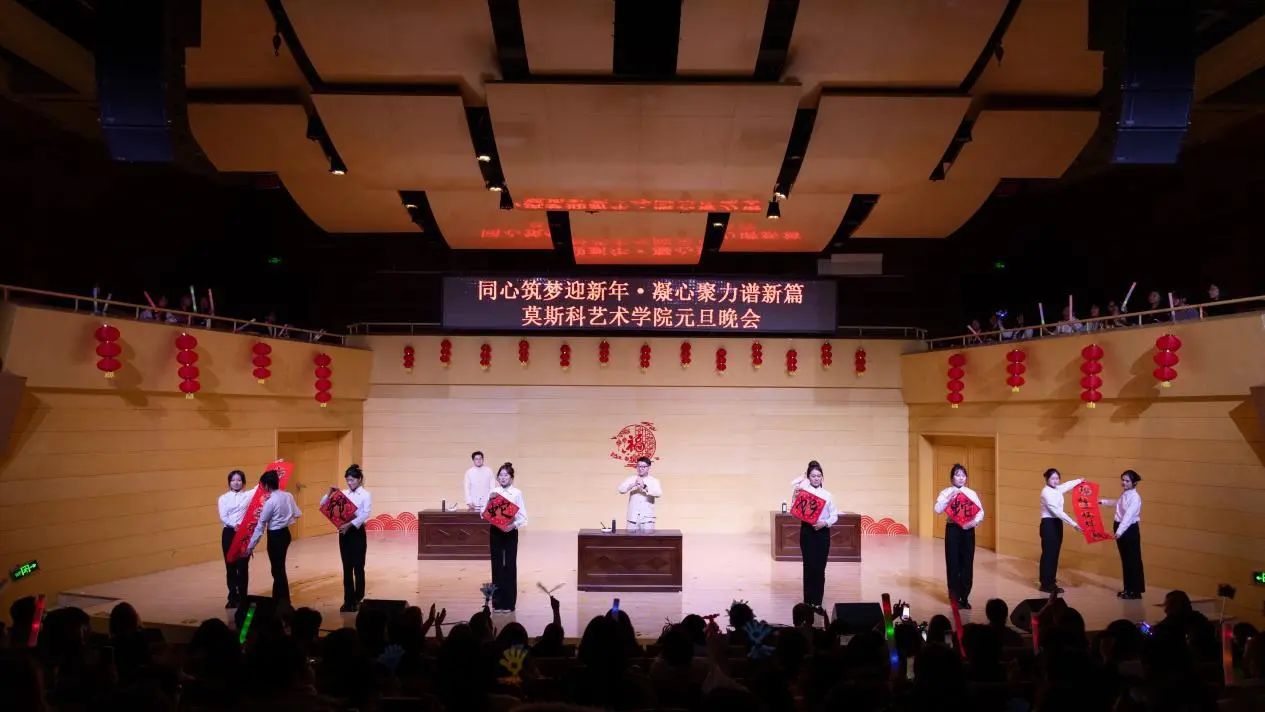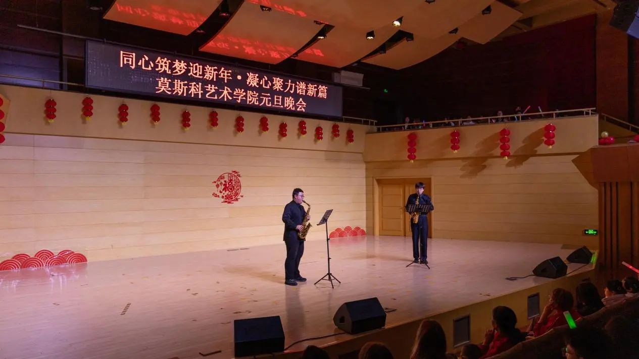 此次元旦联欢会,公司精心策划、认真筹备,以同心共筑梦迎新年 凝心聚力谱新篇为主基调,用器乐合奏、表演唱、舞蹈、合场等形式呈现;公司特邀请暑期社会实践基地孙静老师、垚垚及优秀员工王晶晶前来助阵,中俄师生同台演绎,展现全院师生凝心聚力、团结奋进、开拓进取、自强不息的良好精神面貌,表达对新时代、对美好未来的憧憬,为迎接新的一年营造欢乐祥和的氛围。