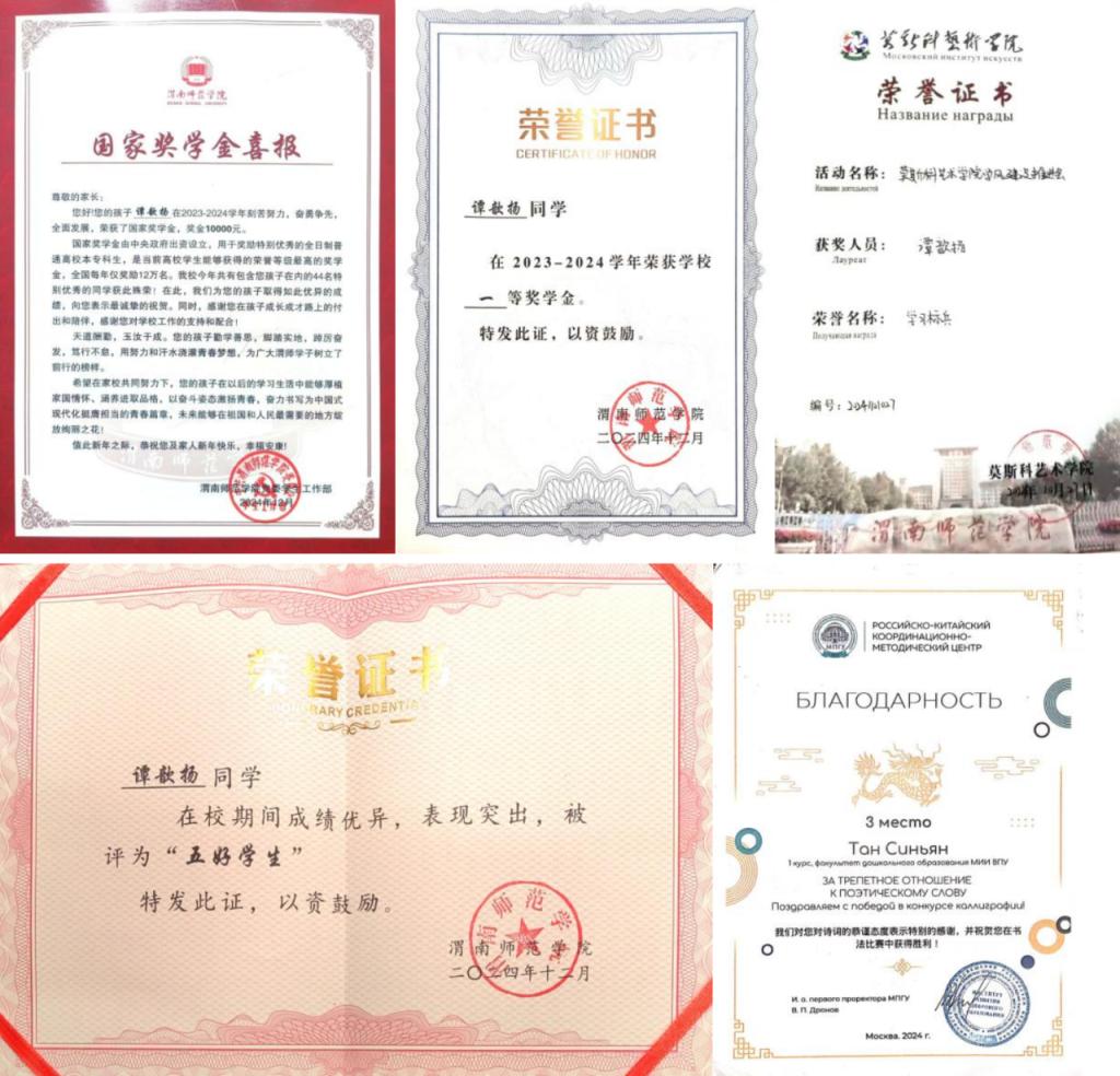 2024年5月获莫斯科国立师范大学普希金书法比赛第三名