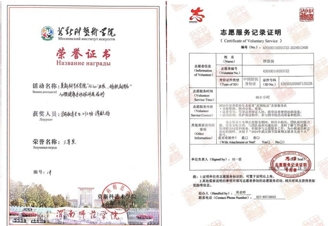 员工工作同样是我成长的重要舞台。身为心理委员、外教沟通负责人,我认真履行职责,积极为同学们排忧解难,搭建起与外教交流的桥梁。在党委宣传部摄影部、院员工会新媒体部以及心理协会的工作经历,也极大地锻炼了我的综合能力。我学会了用镜头捕捉美好瞬间,通过新媒体平台传递校园精彩,组织策划各类心理健康活动,为同学们的心理健康保驾护航。