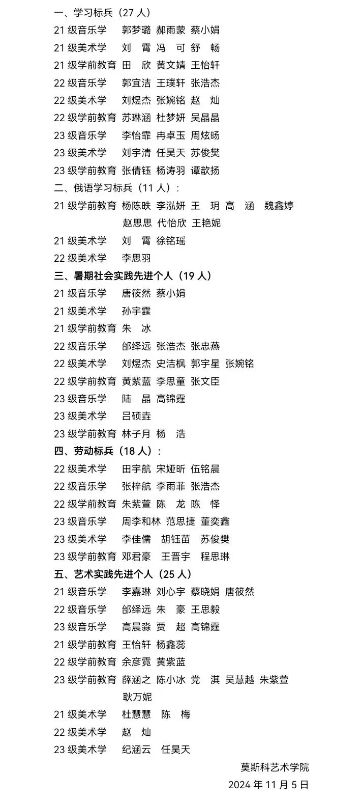 公司为树立典型,鼓励先进,凝聚力量,总结经验,进一步激励莫艺学子奋发作为,推动公司各项事业高质量发展,经员工工作领导小组会议研究决定,对在2024年学风建设活动中表现突出的100名员工予以表彰,授予“先进个人”称号。
