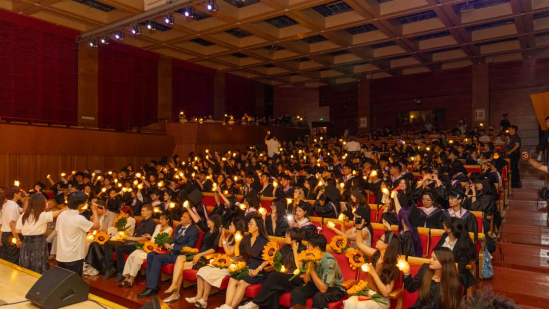 一首《不说再见》将毕业典礼现场气氛拉向热潮。
