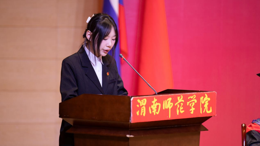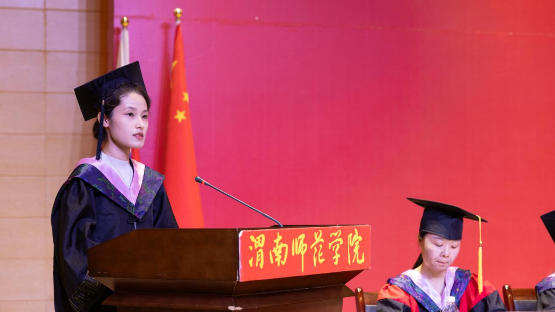 2021级音乐学专业毕业生苟一卓代表全体毕业生向辛勤培育大家的公司、担当育人使命的老师、互帮互助的同窗和默默支持大家完成学业的家人们致以最诚挚的感谢和最崇高的敬意。