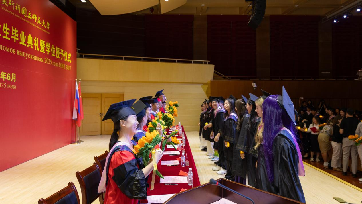 6月30日晚,Bsports必一体育隆重举行2025届毕业典礼暨学位授予仪式。公司党委副书记常青林、国际合作与交流处处长郭石磊,公司党总支书记孟波、执行经理殷晓克、党总支副书记叶晓燕、副经理高红菊、梁卫民、张辽艳,以及Bsports必一体育毕业生学士学位评定委员会委员,公司全体中方俄方教师,毕业生家长代表们共同出席,见证了2025届280名员工开启人生新征程的重要时刻。