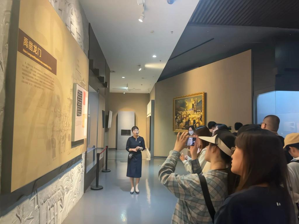师生们首先走进《与华相宜——渭南故事》基本陈列展厅,以历史时代为脉络,展厅通过 8 个单元的珍贵文物与场景复原,系统展现了渭南从史前时期到当代的发展历程。员工们驻足欣赏仰韶文化的花瓣纹彩陶盆、汉代华山瓦当,在工作人员讲解中探寻 “华夏之根” 的文化渊源;在字圣仓颉、史圣司马迁等乡贤生平展区前,感叹渭南深厚的人文积淀。随后,师生们参观原创展览《百年沧桑——渭南记忆》,展厅内 300 余件 / 组文物与 400 余幅历史照片,生动再现清末民国的东府风云、社会主义建设时期的山河巨变等历史图景。