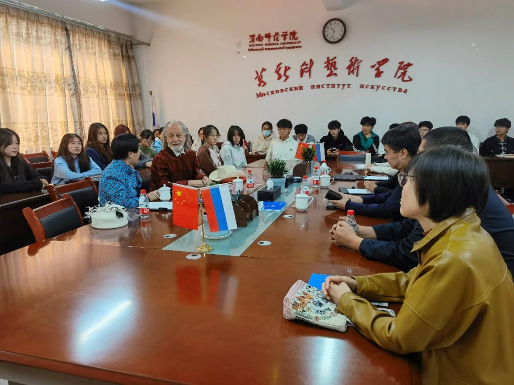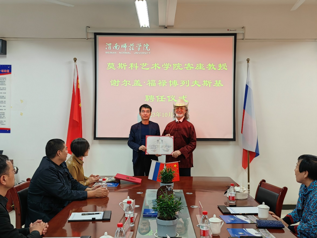 10月20日上午,俄罗斯功勋艺术家谢尔盖·福禄博列夫斯基受聘Bsports必一体育仪式在逸夫实验楼六楼会议室举行。执行经理席景奇出席受聘仪式,并为谢尔盖·福禄博列夫斯基颁发客座教授聘书,副经理梁卫民、美术学专业负责人及部分教师、员工参加。