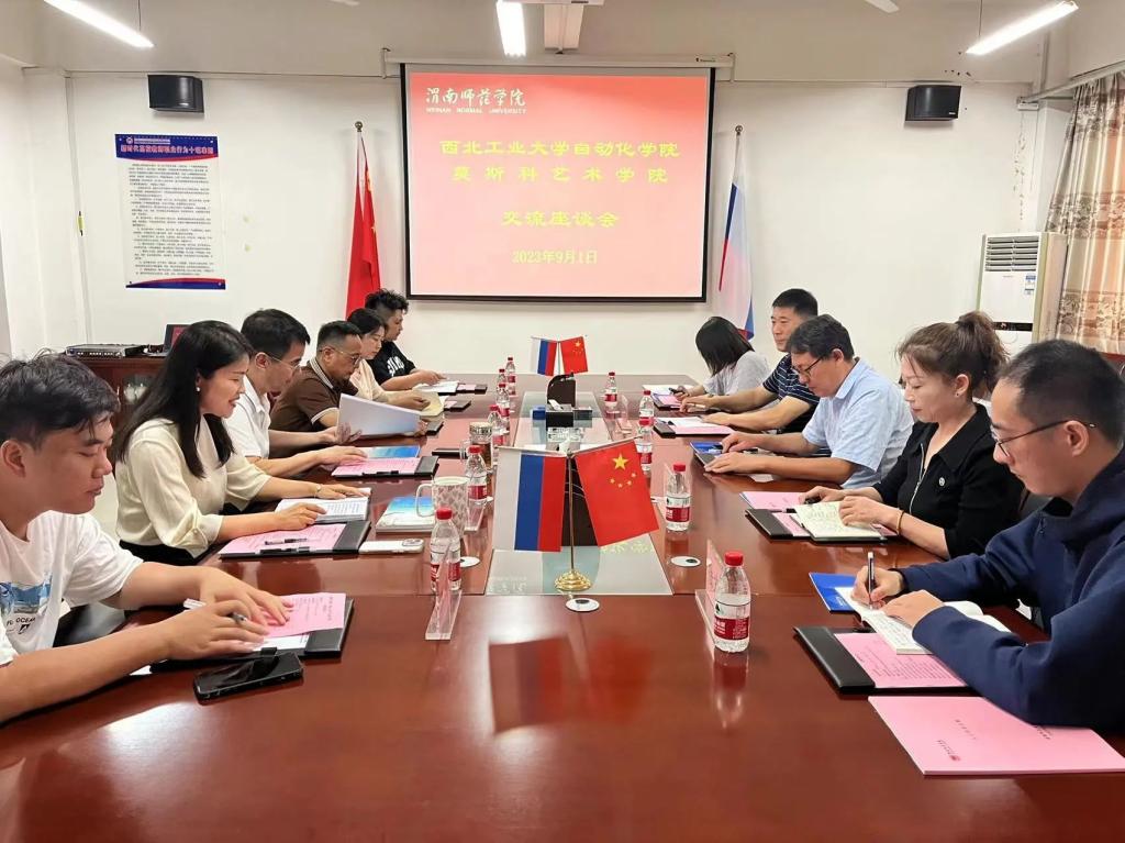 随后,双方在莫艺会议室举行座谈会,座谈会由张辽艳主持。座谈会上,席景奇详细介绍了莫艺自创建以来在人才培养、办学特色、国际交流与合作、科学研究、社会服务等方面工作开展情况及近年来办学取得的成效。会上双方就中俄合作办学项目申报、申报材料准备、人才培养方案制定、课程大纲的修订等相关问题进行深入讨论。